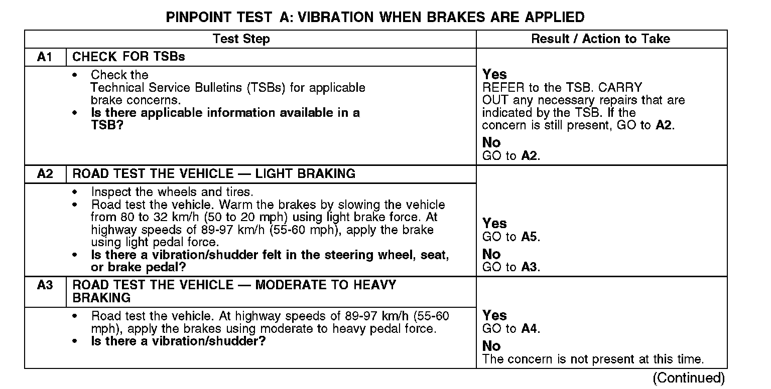 PINPOINT TEST A: VIBRATION WHEN BRAKES ARE APPLIEDNormal Operation