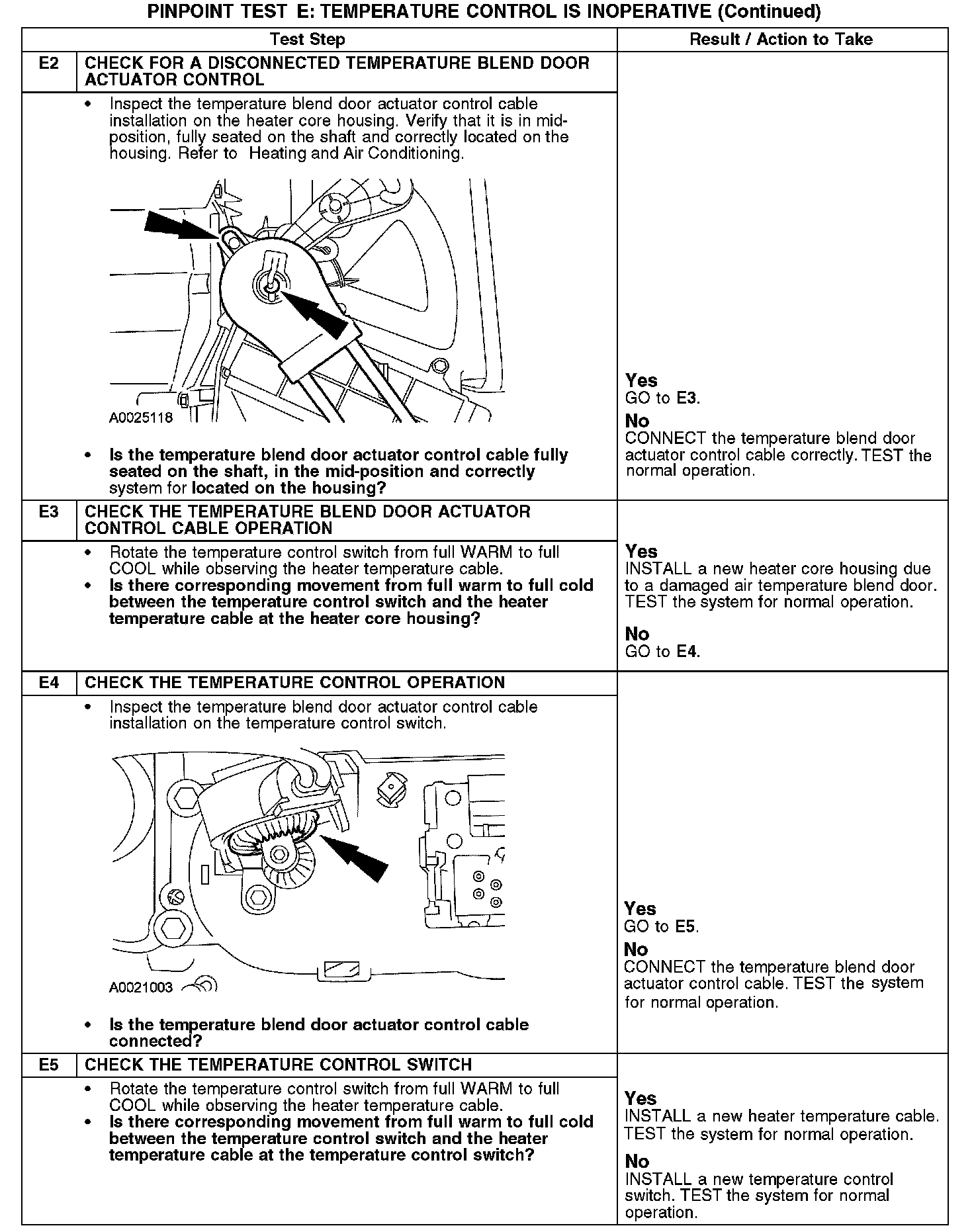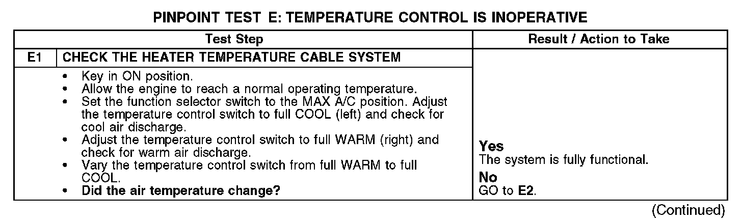 PINPOINT TEST E: TEMPERATURE CONTROL IS INOPERATIVEE1: