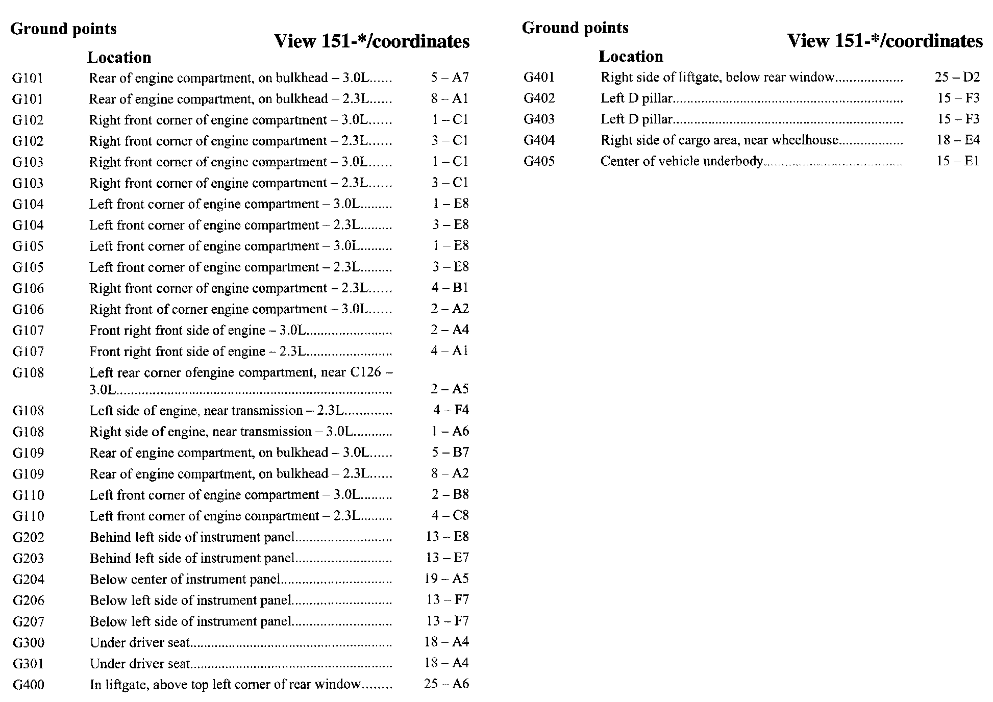 If a link on the Grounds Location Index to a View is not provided, that means that the Grounds and/or View in question does NOT apply to the vehicle model selected.