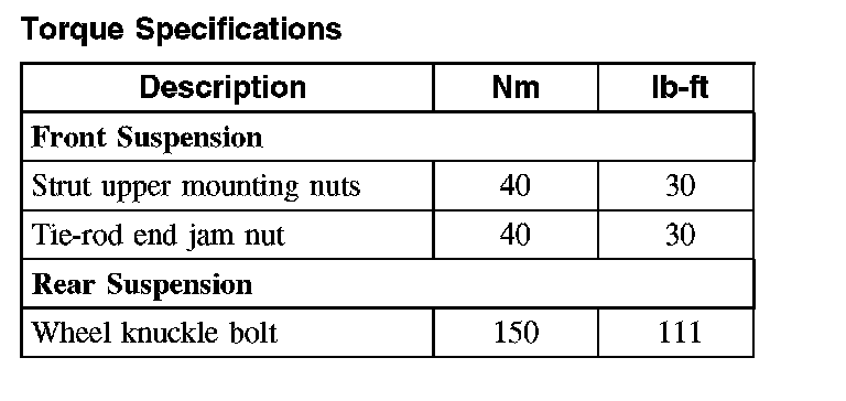 Torque Specifications: