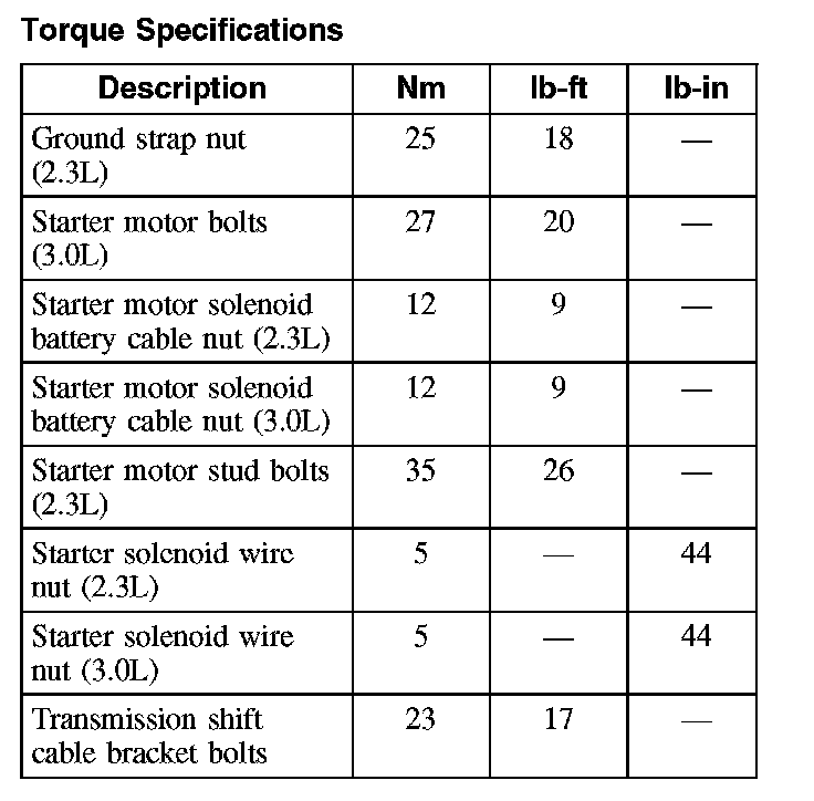 Torque Specifications: