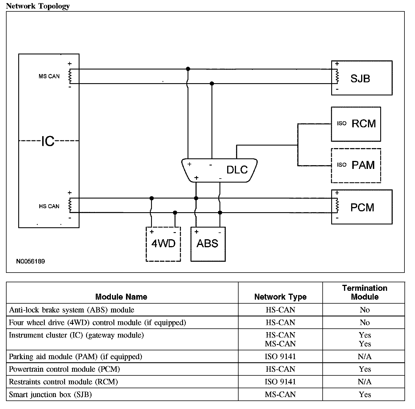 The instrument cluster is the gateway module, translating HS-CAN to MS-CAN and vice versa. This information allows a message to be distributed throughout both networks. The instrument cluster is the only module on this vehicle that has this ability.