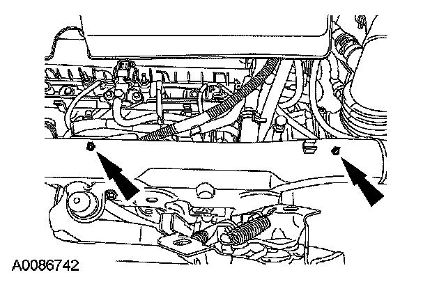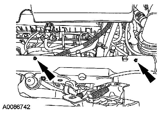 2. NOTE: Mark the hood latch position prior to removal of the bolts.