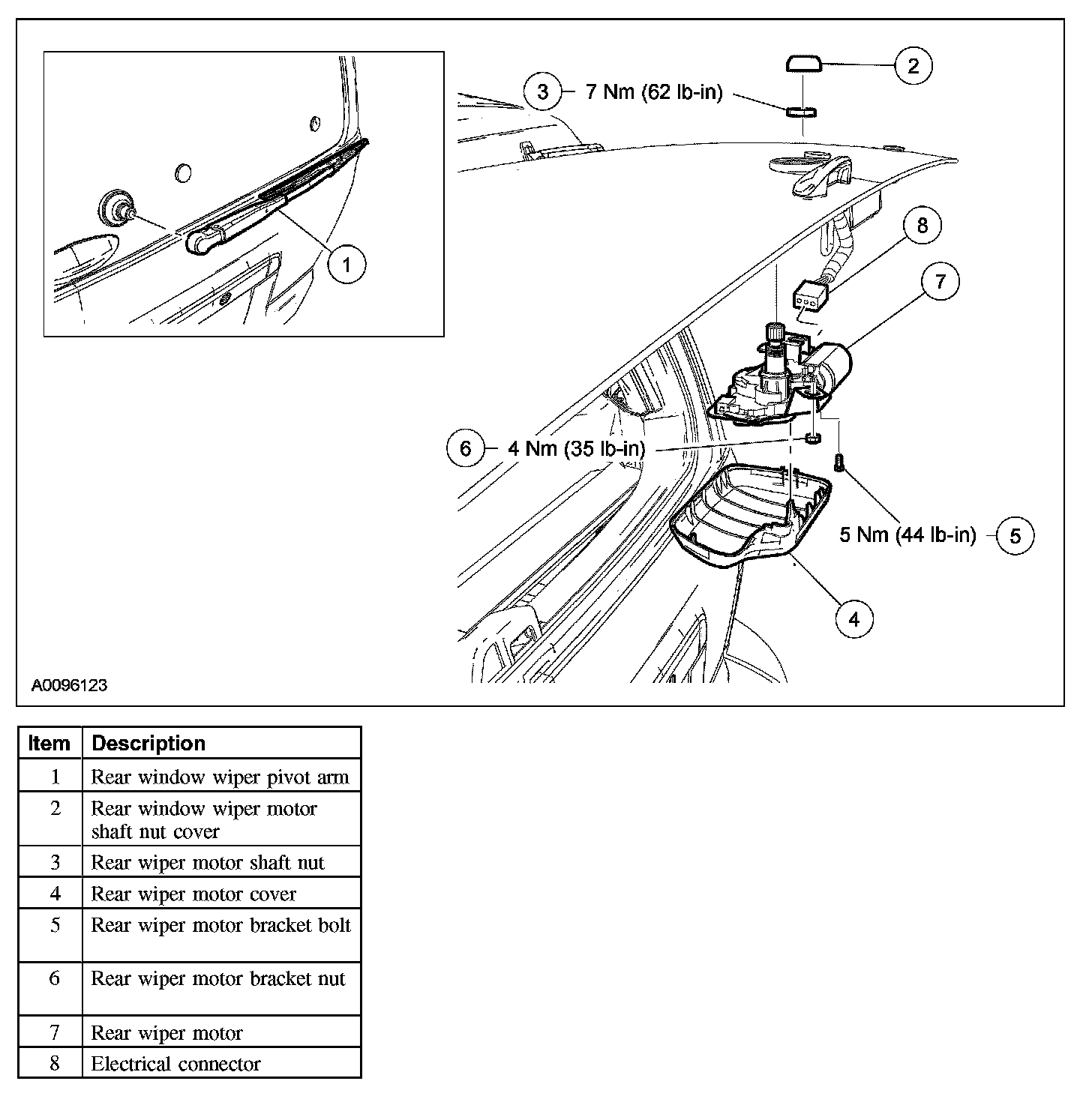 Wiper and Washer System - Exploded View, Rear