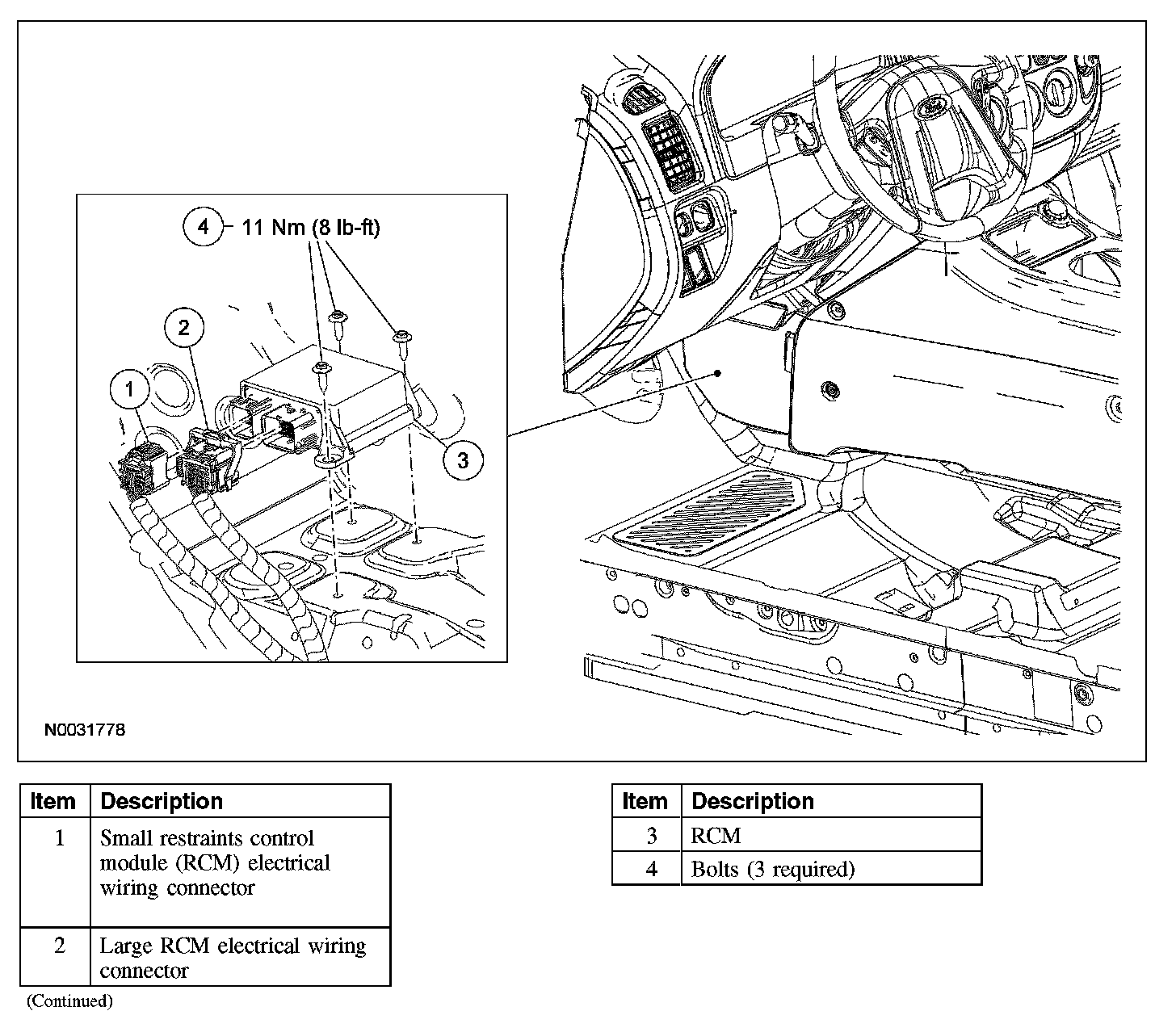 - When installing a new RCM, always make sure the correct RCM is being installed. If an incorrect RCM is installed, erroneous DTCs will result.