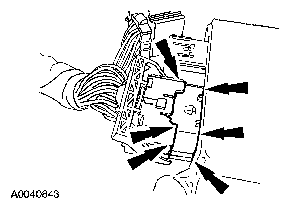 - When installing a new RCM, always make sure the correct RCM is being installed. The RCM 40-pin connector is keyed differently for vehicles with safety canopies and side air bags than the 40-pin connector for vehicles without safety canopies and side air bags. Do not force the 40-pin connector onto the RCM. If the connector is forced onto the RCM, damage to the RCM and/or connector will occur.