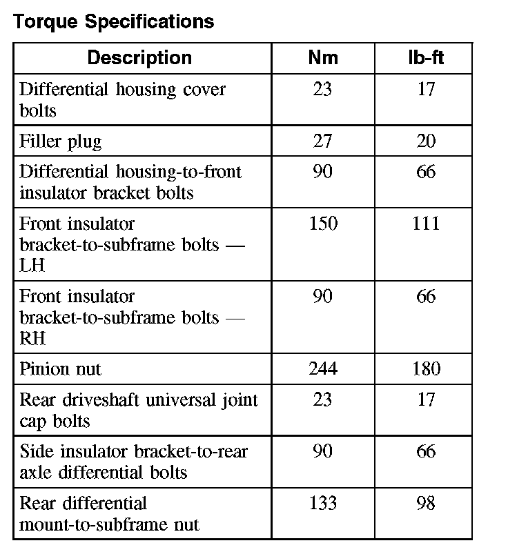 Torque Specifications: