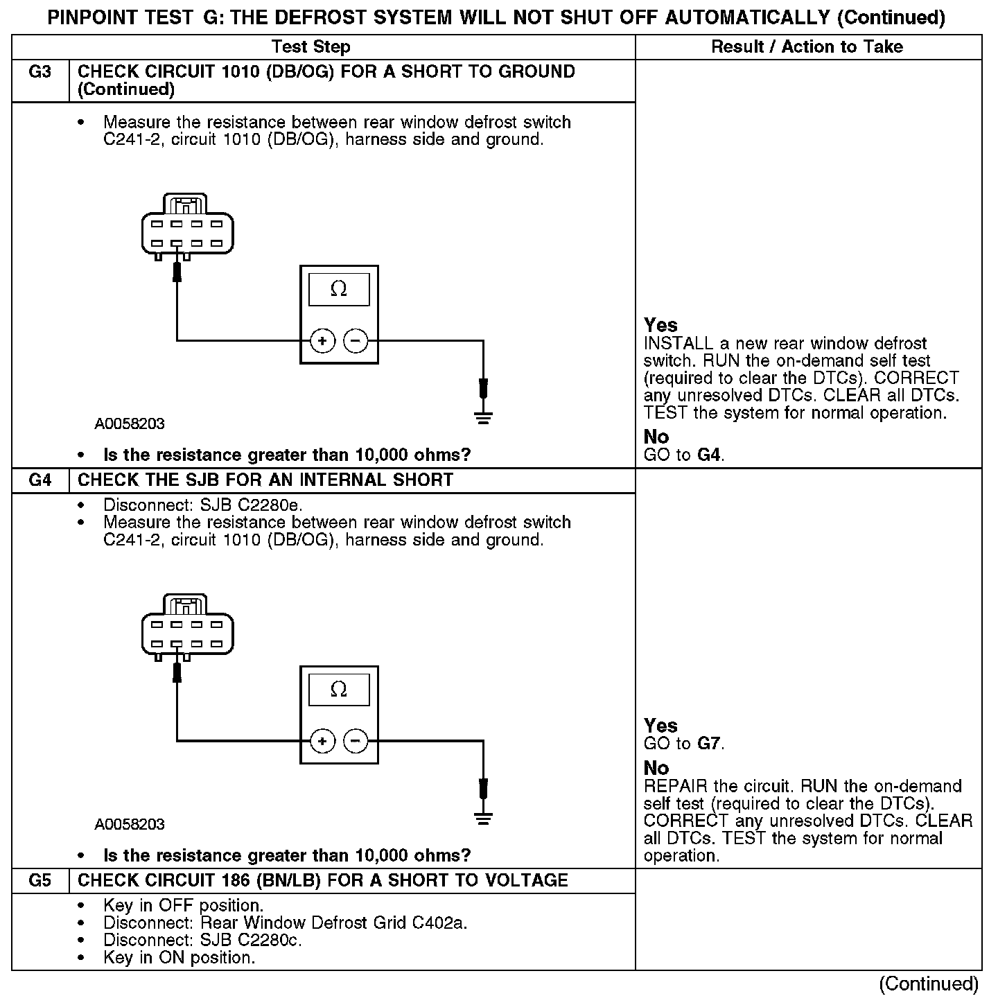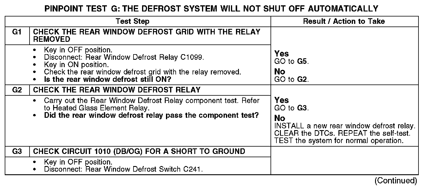 PINPOINT TEST G: THE DEFROST SYSTEM WILL NOT SHUT OFF AUTOMATICALLYG1-G3: