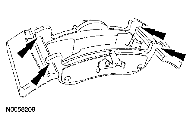 1. Clean, dry and inspect the brake caliper anchor plate. Apply a light coat of lubricant to the 4 brake pad contact points on the anchor plate as indicated.