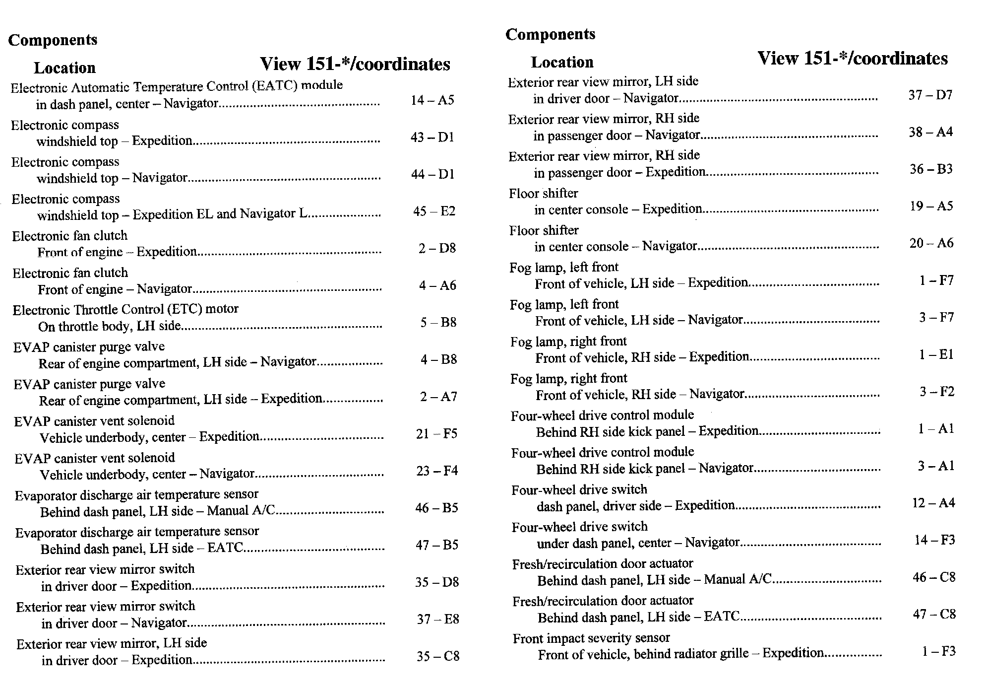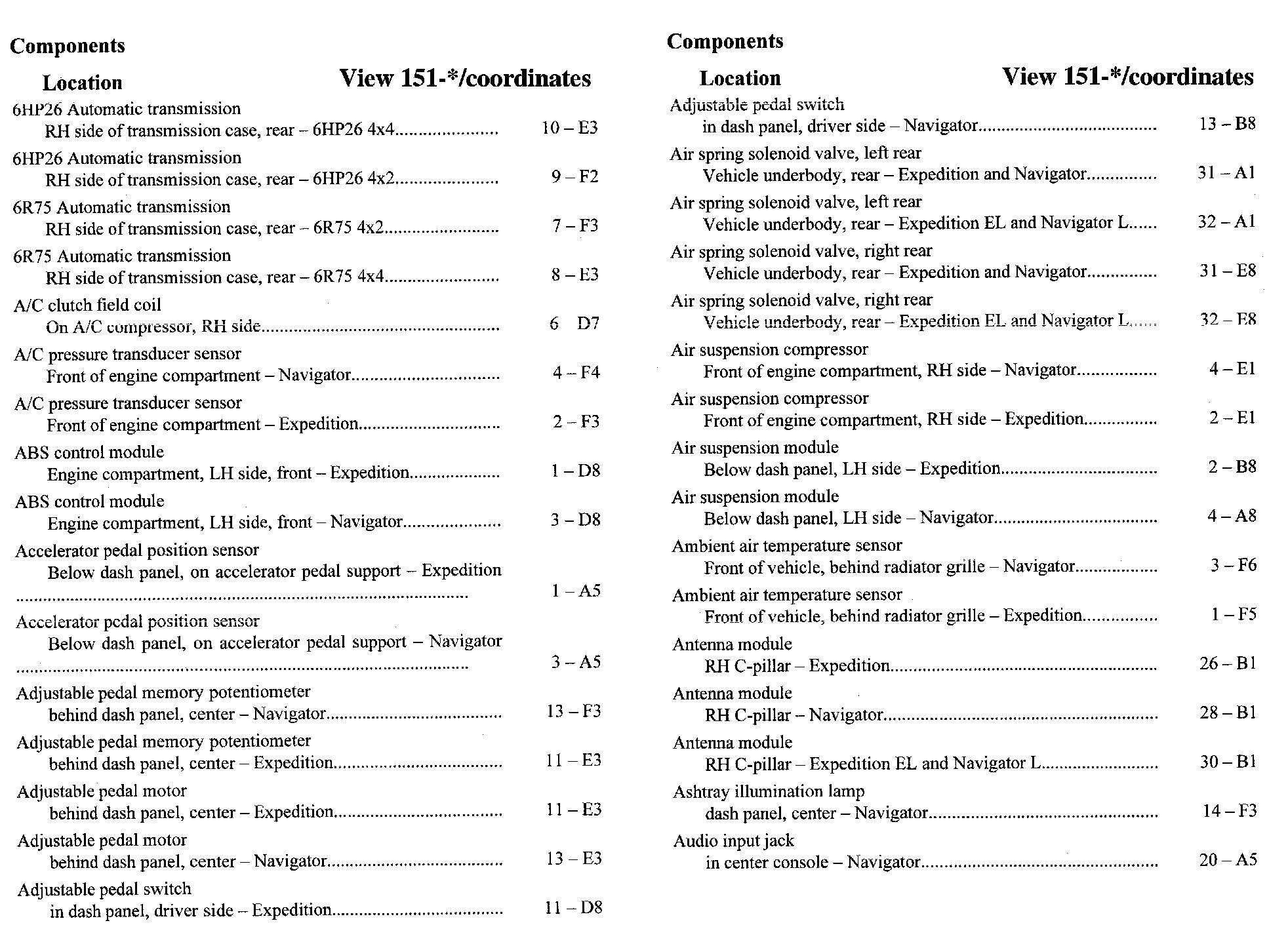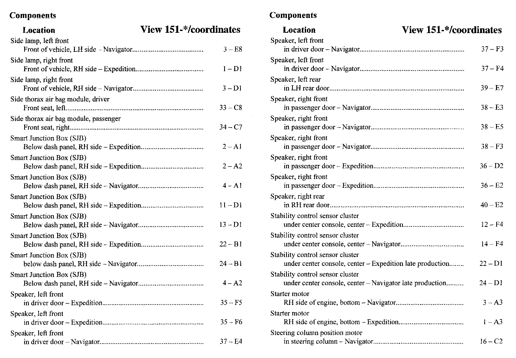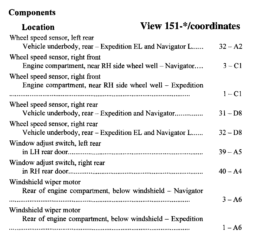 PLEASE NOTE: If a link on the Component Location Index to a View is not provided, that means that the Component and/or View in question does NOT apply to the vehicle model selected.