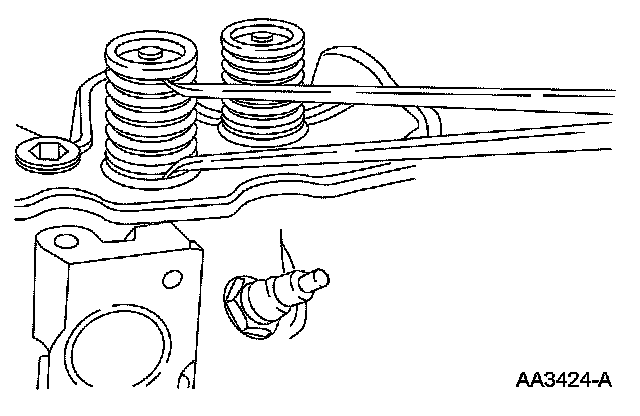 ^ Turn the valve spring and observe the space between the top of the valve spring and the square. Install a new valve spring if out of square.