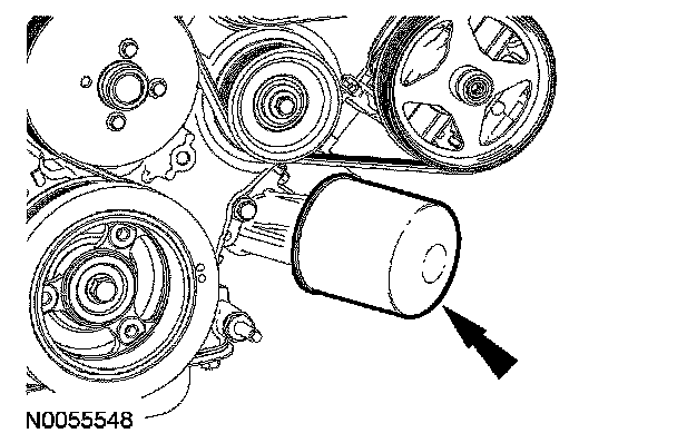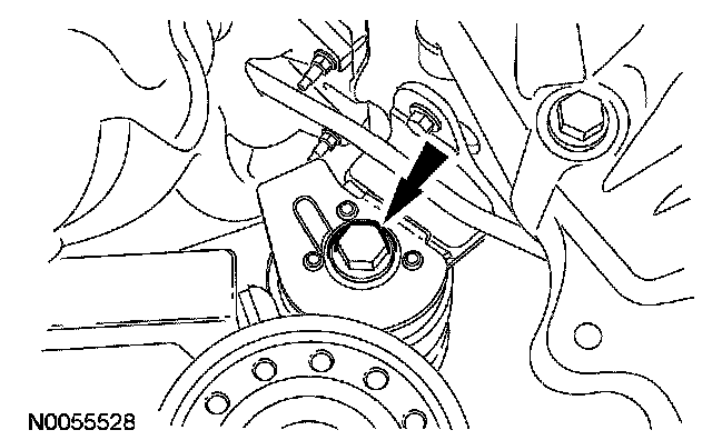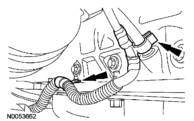15. Connect the wiring harness position retainer to the power steering pump stud bolt.
