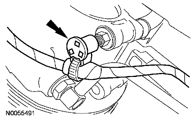 28. Connect the wiring harness retainer and ground cable and install the nut.