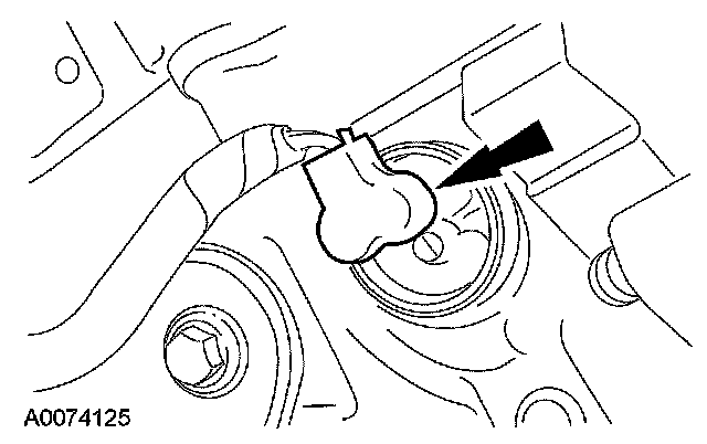 21. Connect the wiring harness position retainer and the crankshaft position (CKP) sensor and A/C compressor electrical connectors.