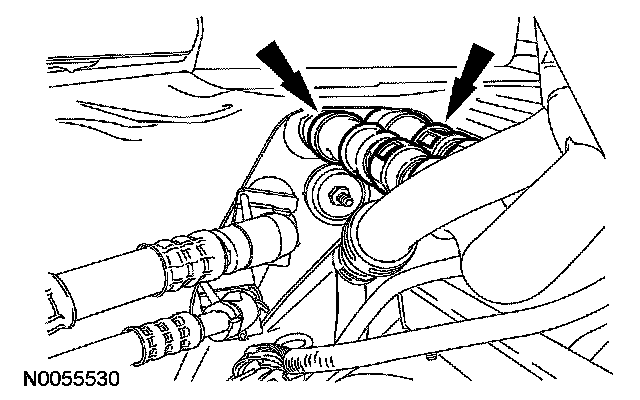 24. Position the 2 heater coolant hoses and connect the quick connect couplings.