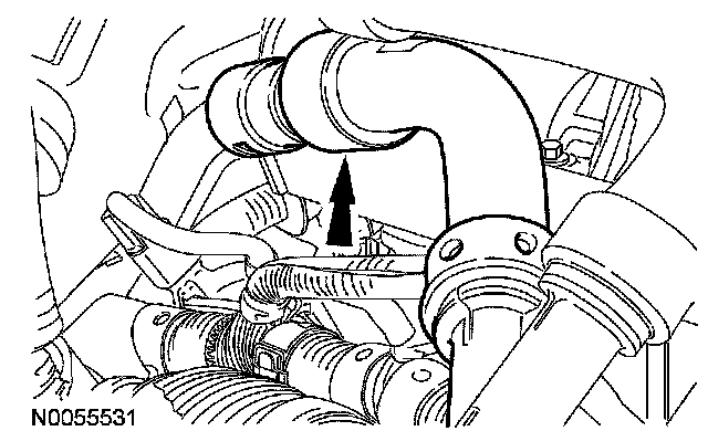 22. Install the clip and connect the degas bottle coolant outlet hose quick connect coupling.