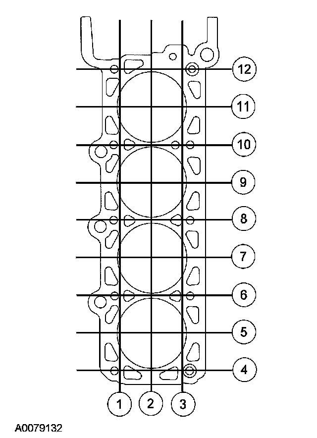 Using a straightedge and a feeler gauge, inspect the cylinder head for flatness in the sequence shown. If the cylinder head is distorted, install a new cylinder head.