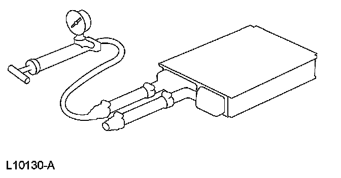 8. If the pressure drops, check the heater hose connections to the core tubes for leaks. If the heater hoses do not leak, remove the heater core from the vehicle and carry out the bench test.