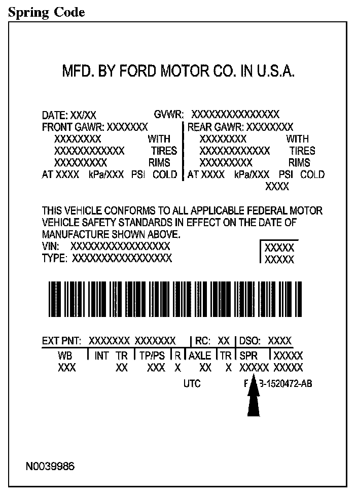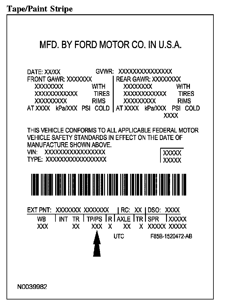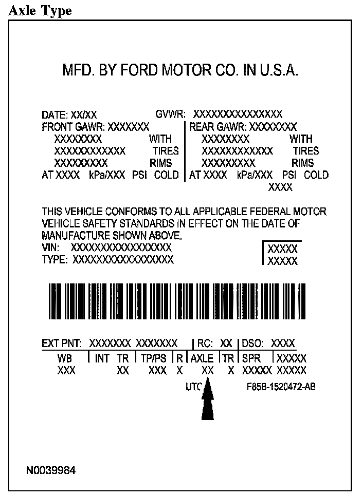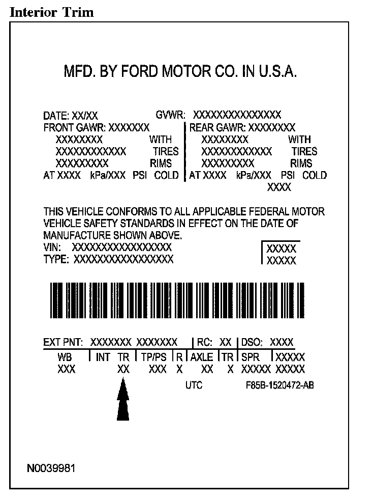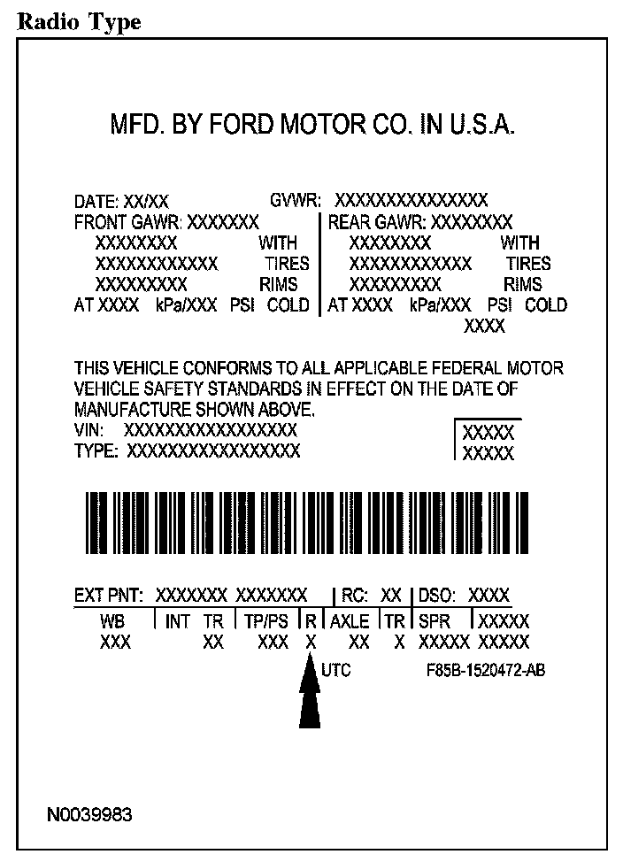 Powertrain calibration information is printed in the lower right corner of the vehicle certification (VC) label. Only base calibration information is printed. Revision levels will not appear, however, they can be found in On Line Automotive Service Information System (OASIS). For the current model year, Ford Motor Company is using 3 different protocols which describe powertrain base calibration. These protocols are designed to provide worldwide standardization for vehicle calibration. If the electronic calibration strategy was introduced in 1998 and carried into the current model year, Protocol 1 will be used. Refer to Protocol 1. If the electronic calibration strategy was introduced in 1999 and carried into the current model year, Protocol 2 will be used. Refer to Protocol 2. For electronic calibration strategy introduced in 2000 and beyond, Protocol 3 will be used. Refer to Protocol 3.