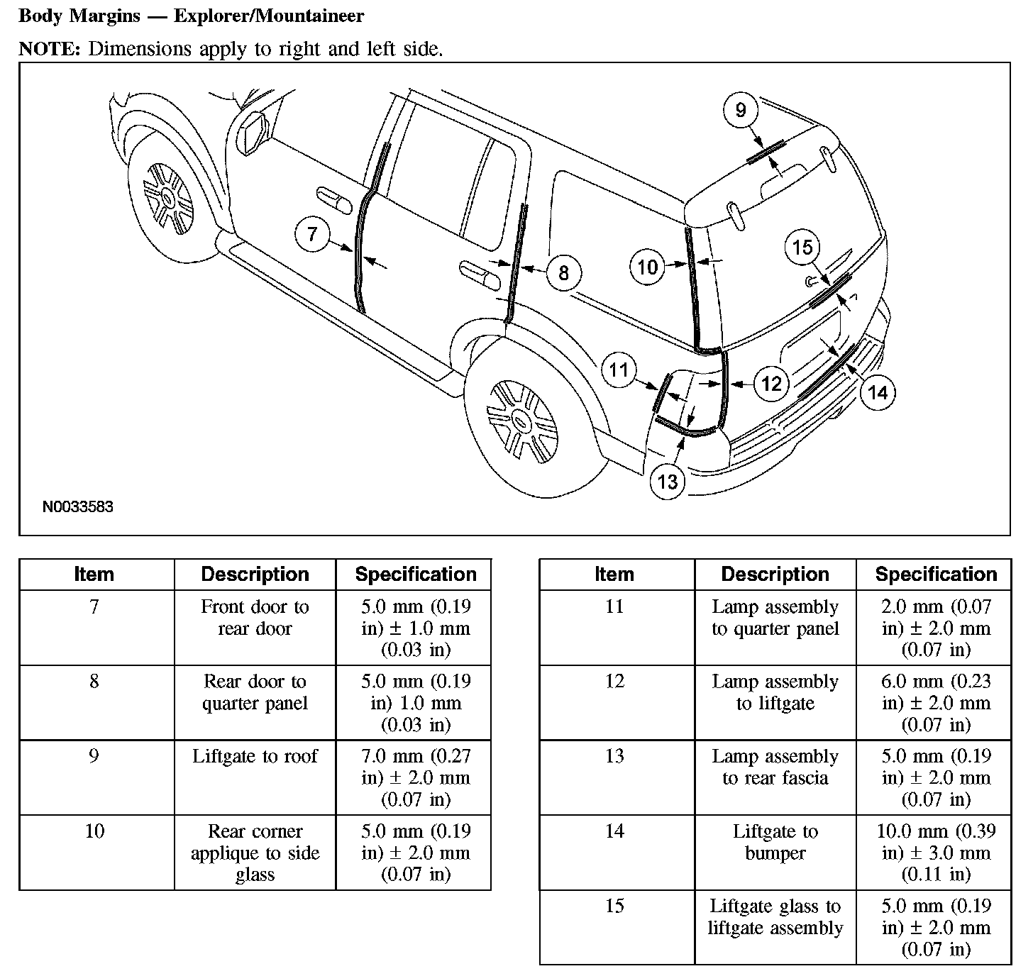 Body Margins - Explorer/Mountaineer: