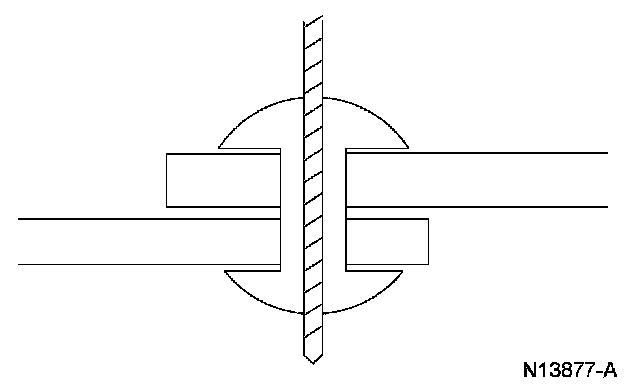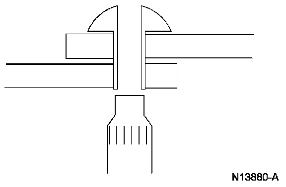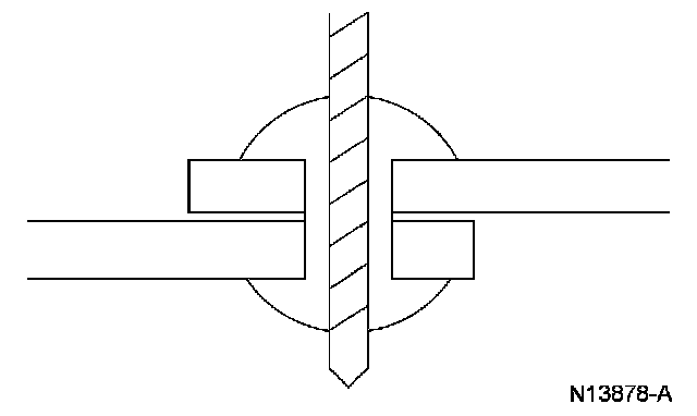 1. Line drill a hole the size of the bolt through the old rivet hole. Example: for a 11.11 mm (7/16 in) diameter rivet, use a 12.7 mm (1/2 in) drill bit.