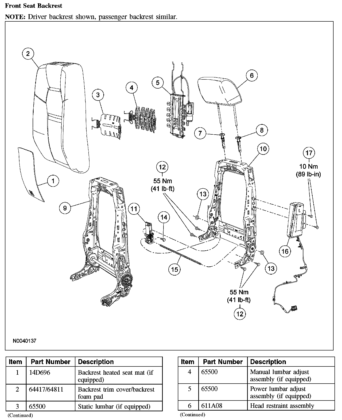 Front Seat Backrest (Part 1):