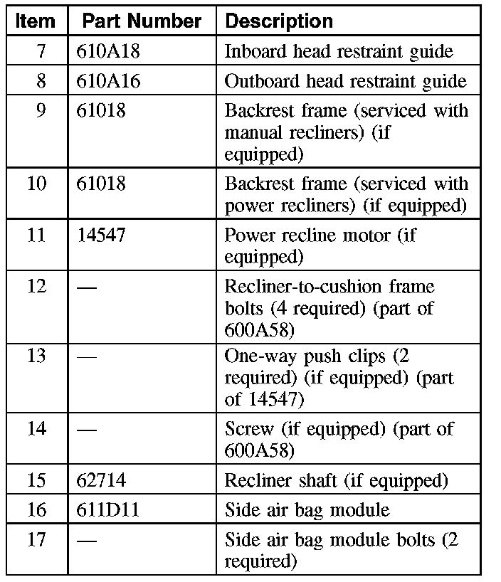 - If a seat equipped with a supplemental restraint system (SRS) component is being serviced, the SRS must be depowered.