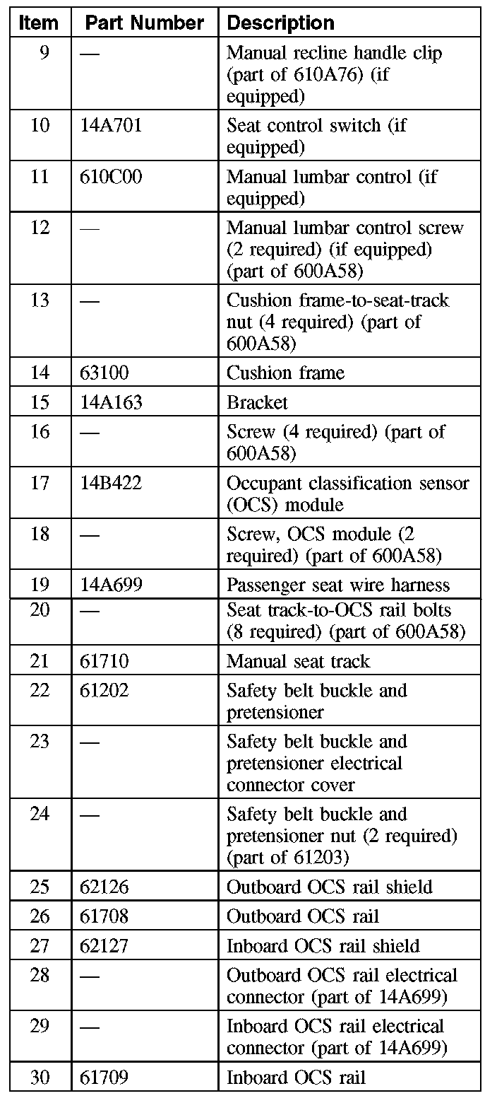 5. Install the front seat and repower the SRS. If a passenger seat has been serviced, do not prove out the SRS at this time.