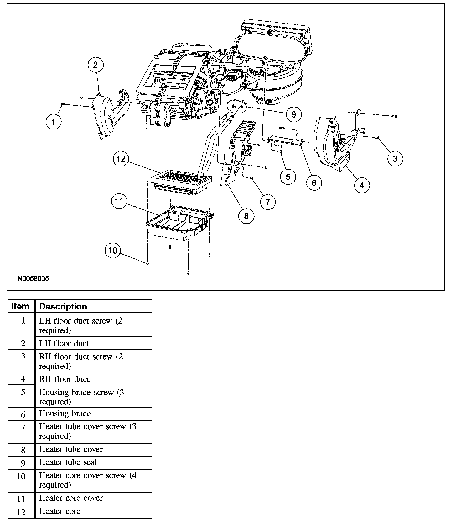 1. Remove the heater core and evaporator core housing. Service and Repair