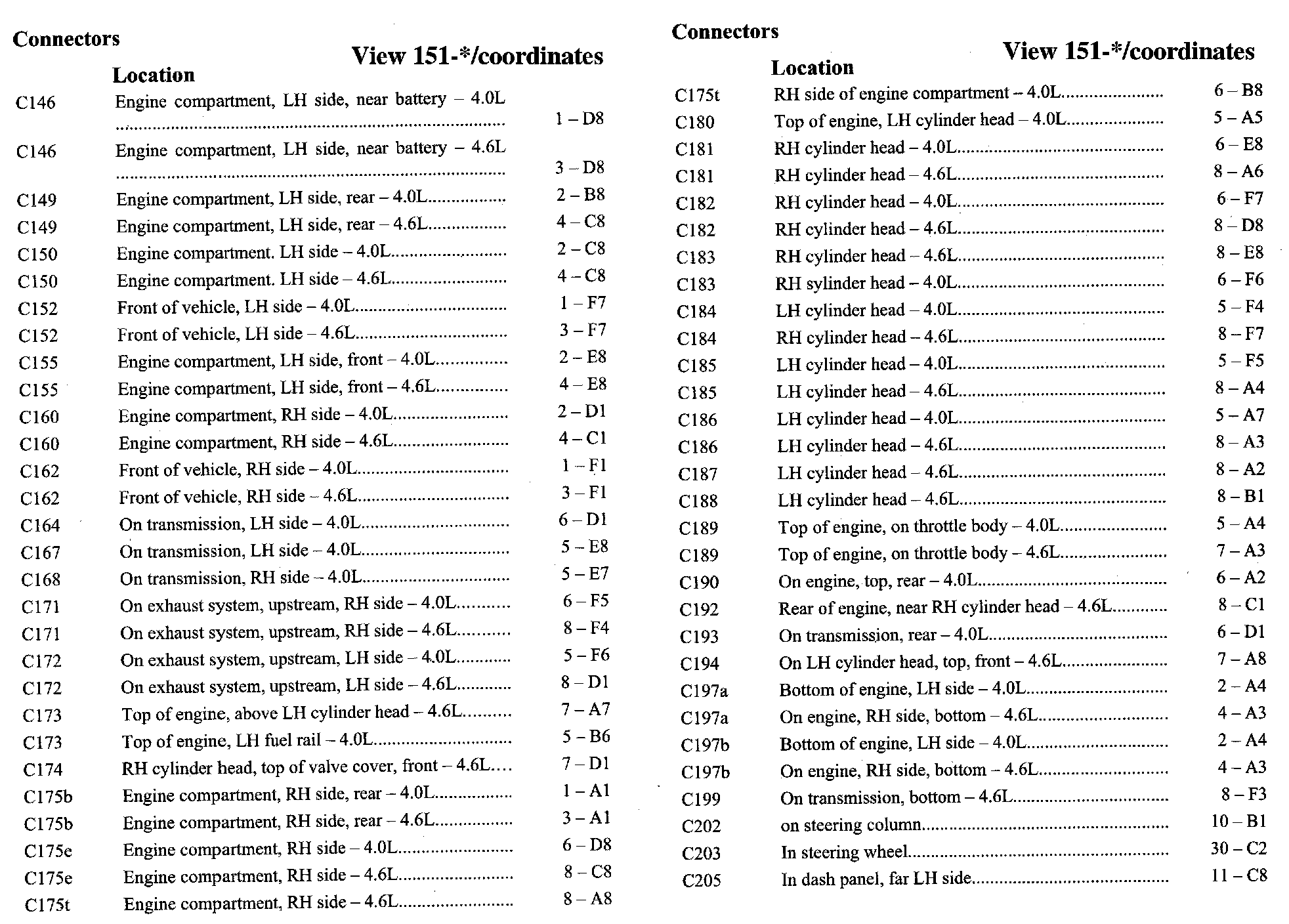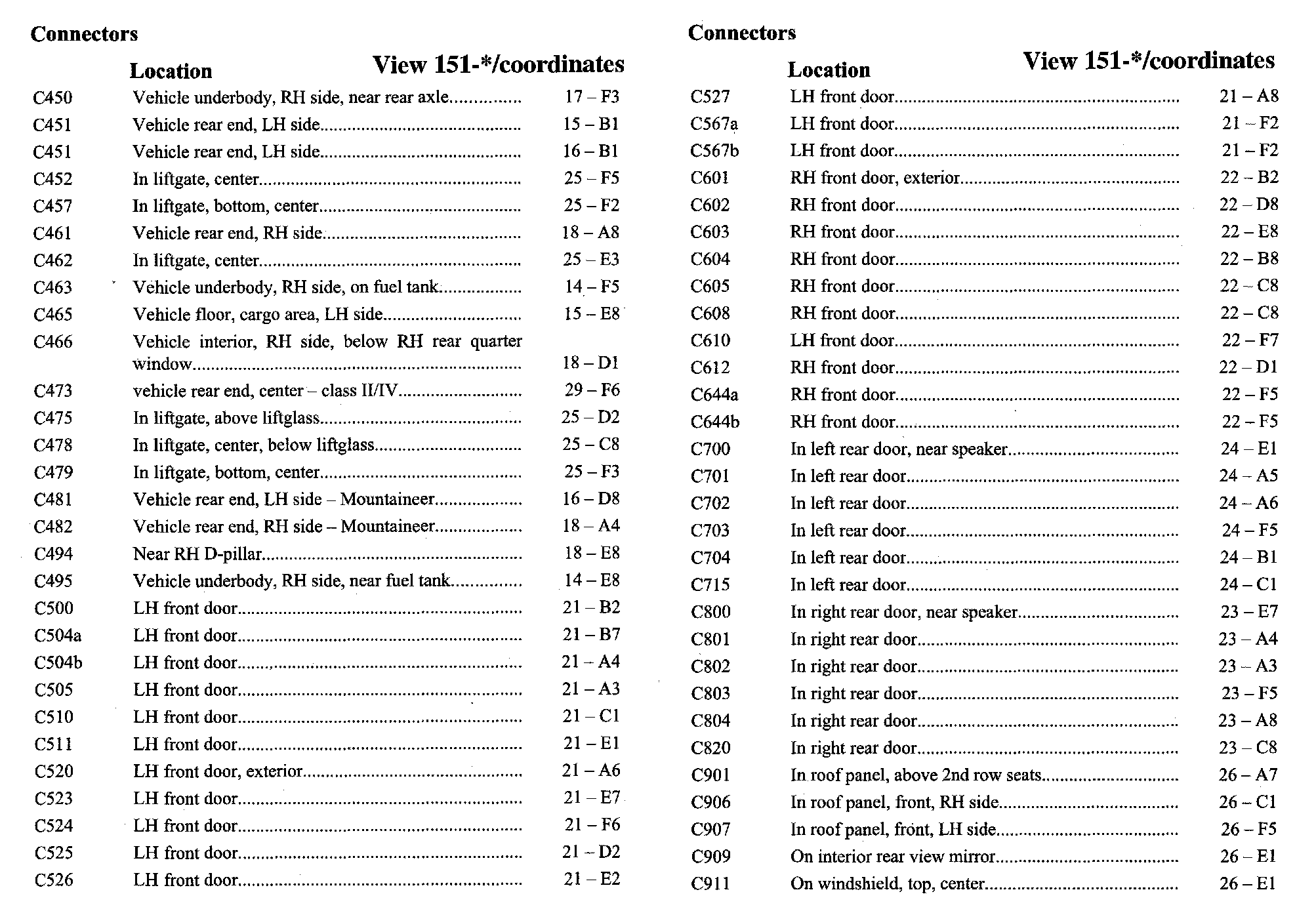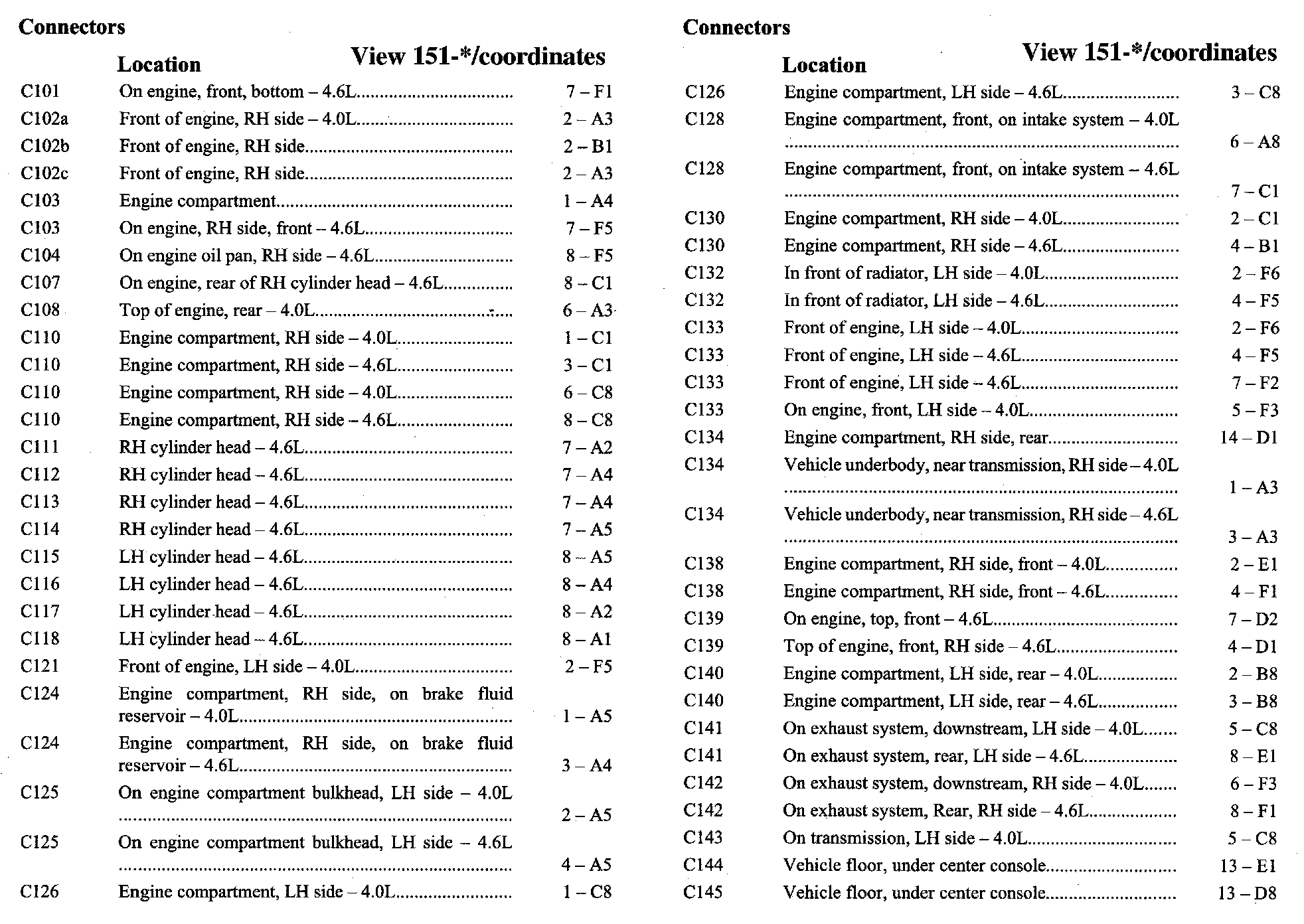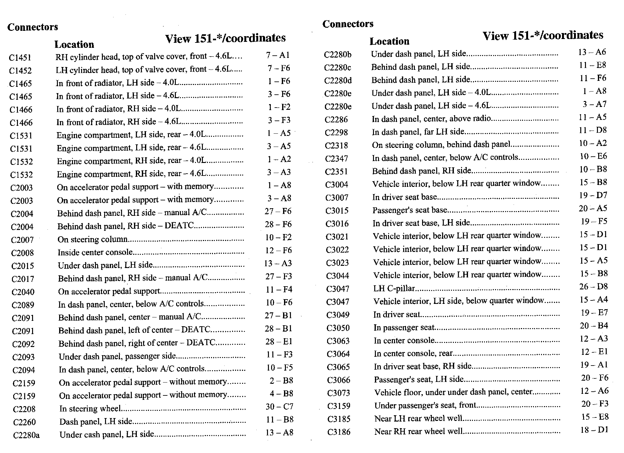 PLEASE NOTE: If a link on the Connector Location Index to a View is not provided, that means that the Connector and/or View in question does NOT apply to the vehicle model selected.