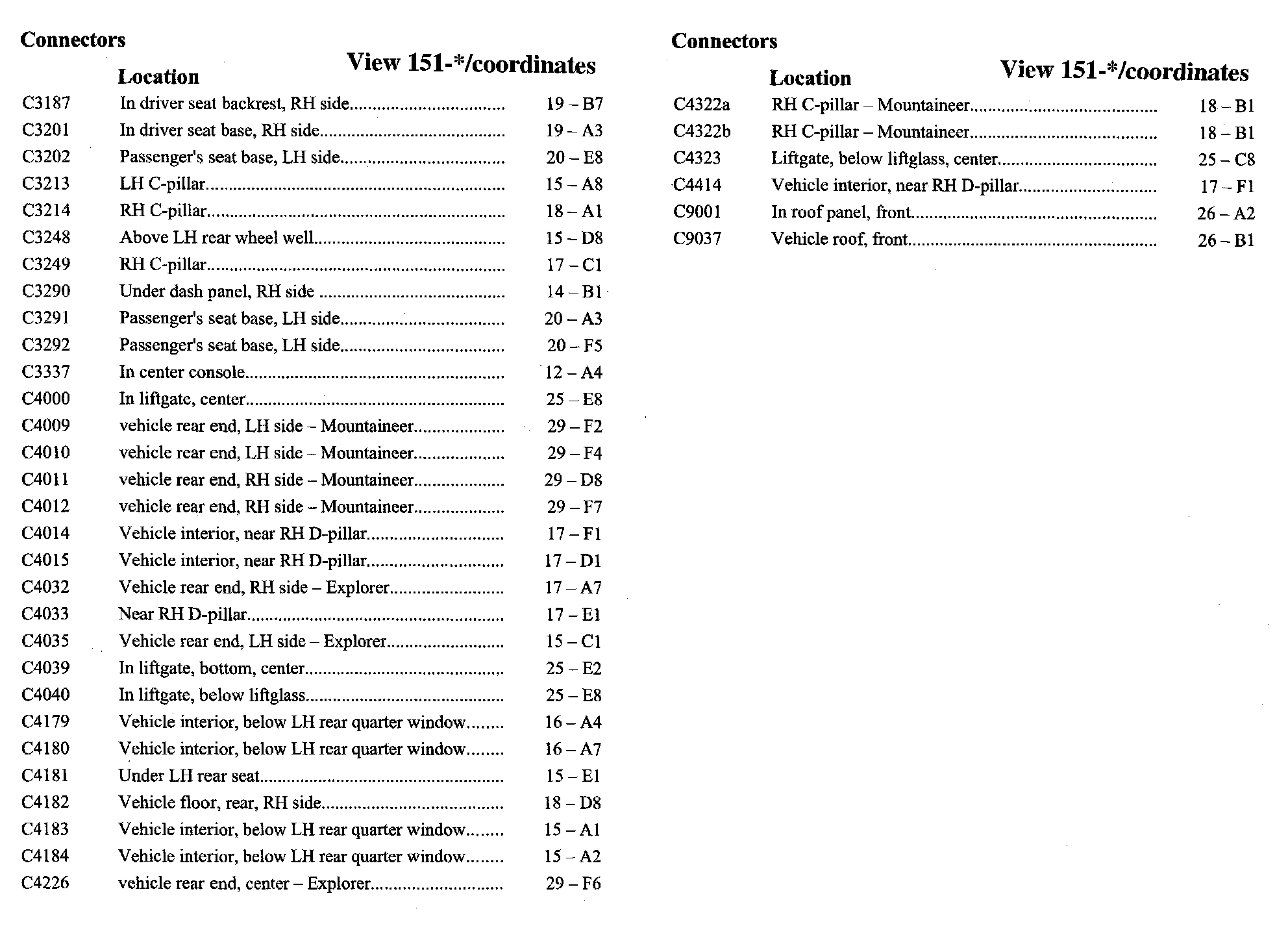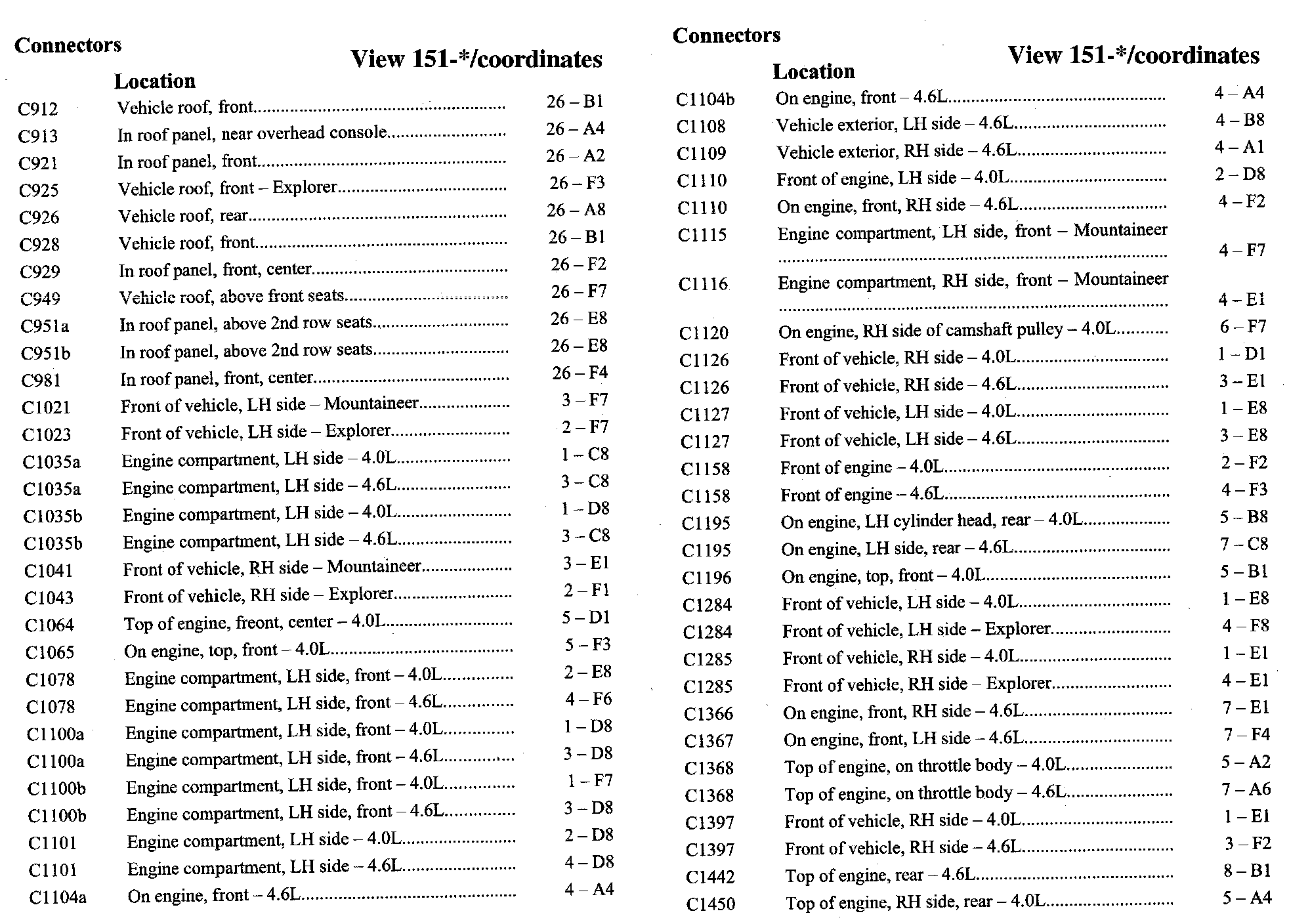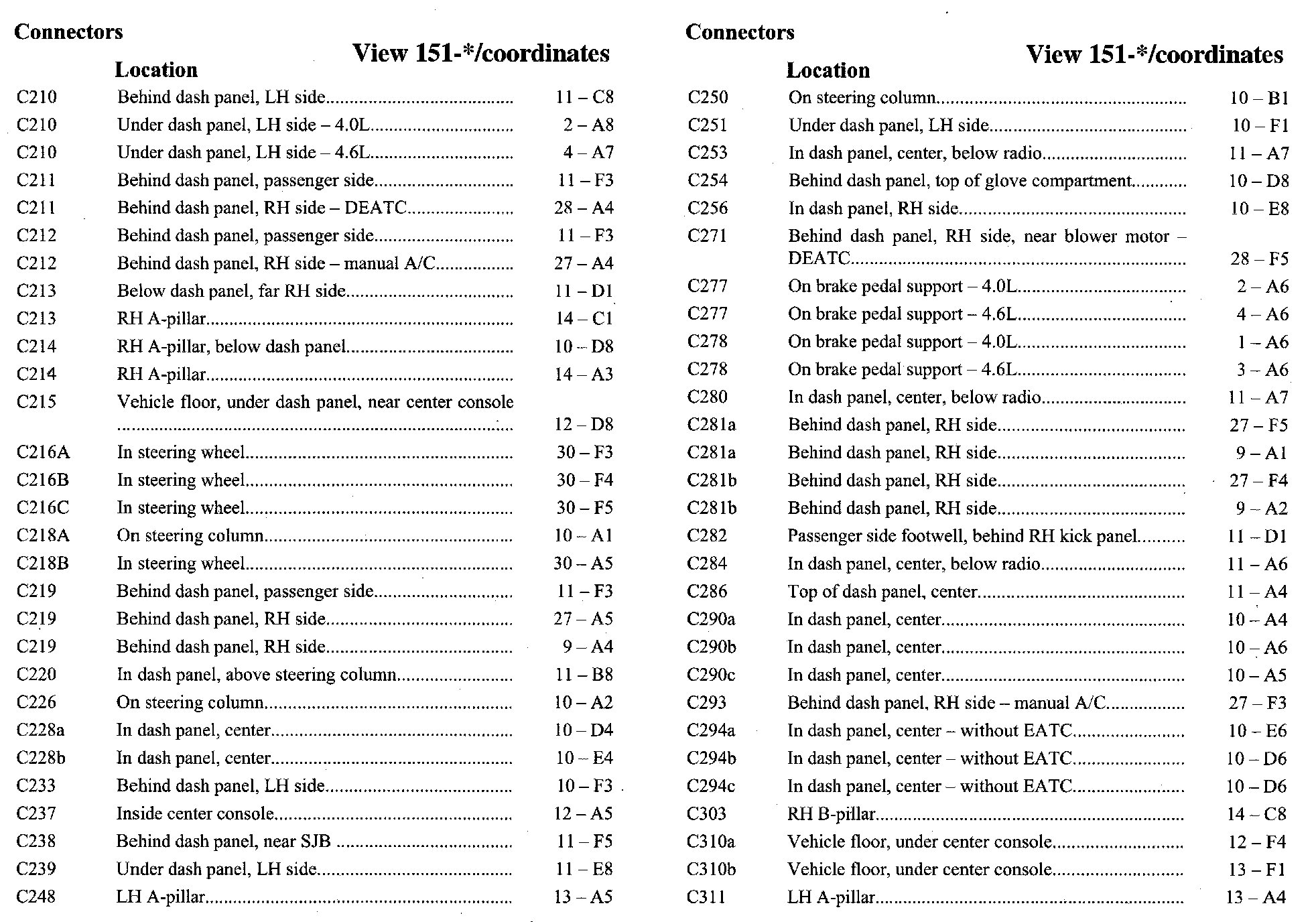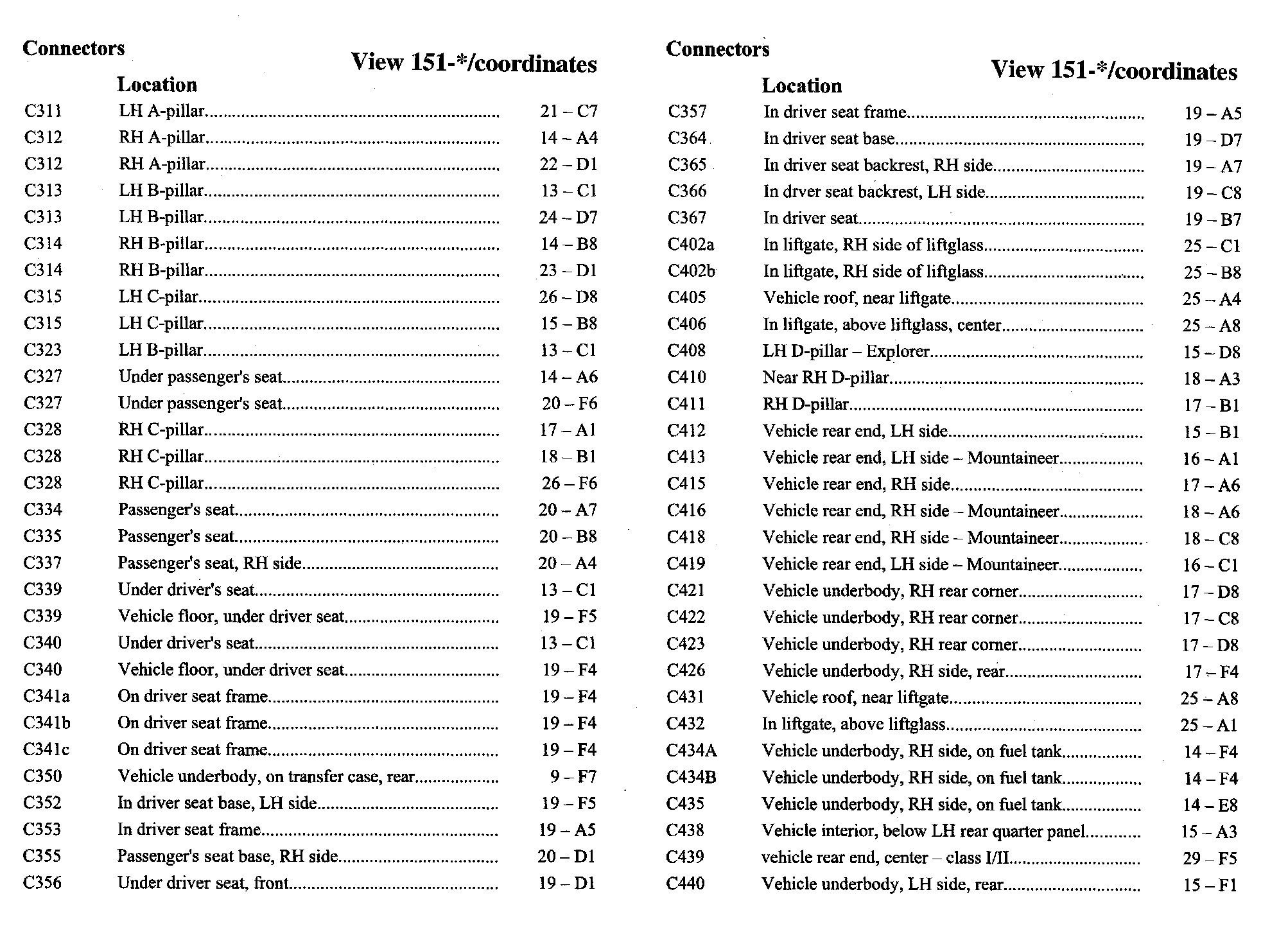 PLEASE NOTE: If a link on the Connector Location Index to a View is not provided, that means that the Connector and/or View in question does NOT apply to the vehicle model selected.
