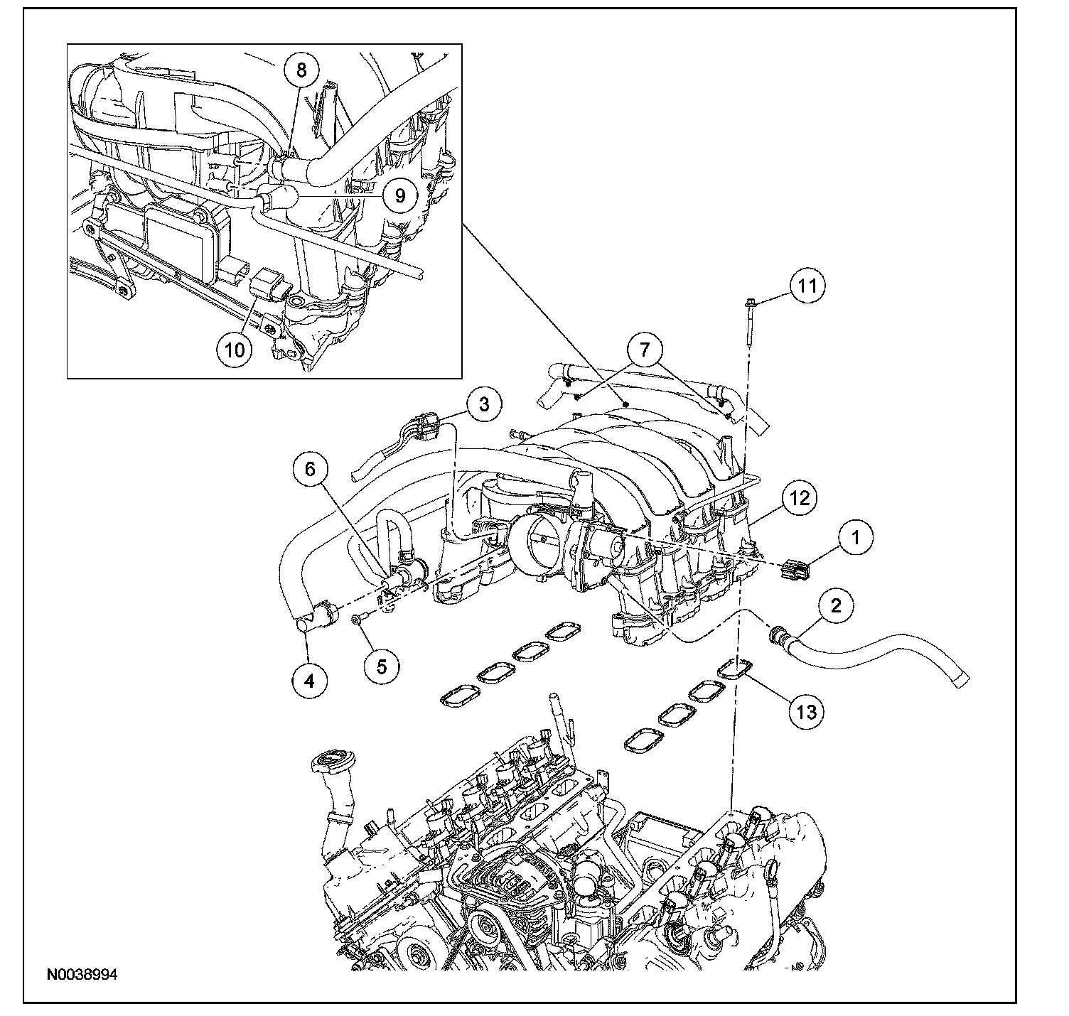 Using new intake manifold gaskets, position the intake manifold.