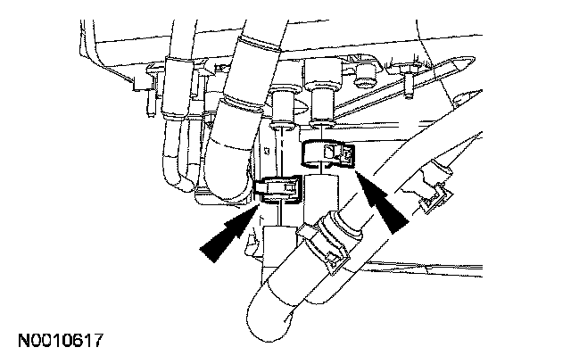 3. Release the 2 heater hose clamps and disconnect the heater hoses.