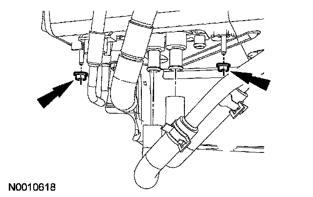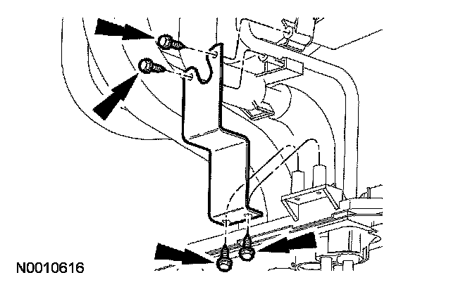 5. Remove the 2 auxiliary line floorpan bracket nuts.