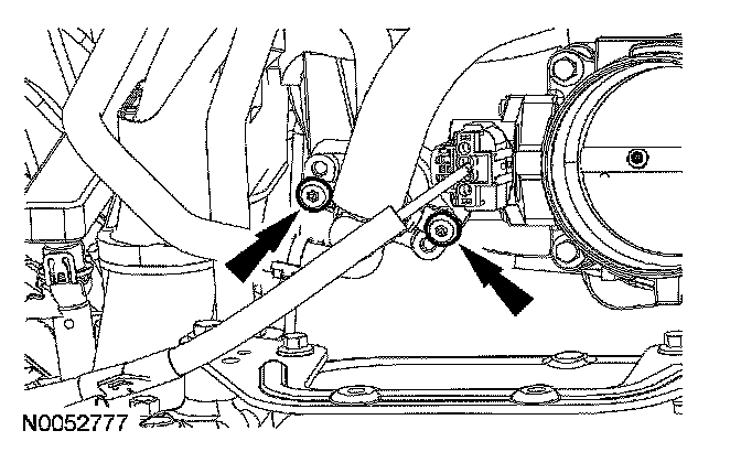 2. Remove the bolts and position the heated positive crankcase ventilation (PCV) fitting and hoses aside.