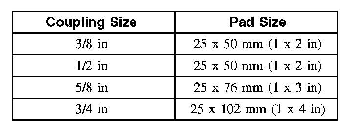 2. Cut an abrasive pad from maroon colored 3M Scotch Brite(R) with the dimensions corresponding to the coupling size.