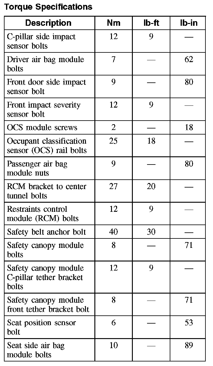 Air Bag Systems: Specifications