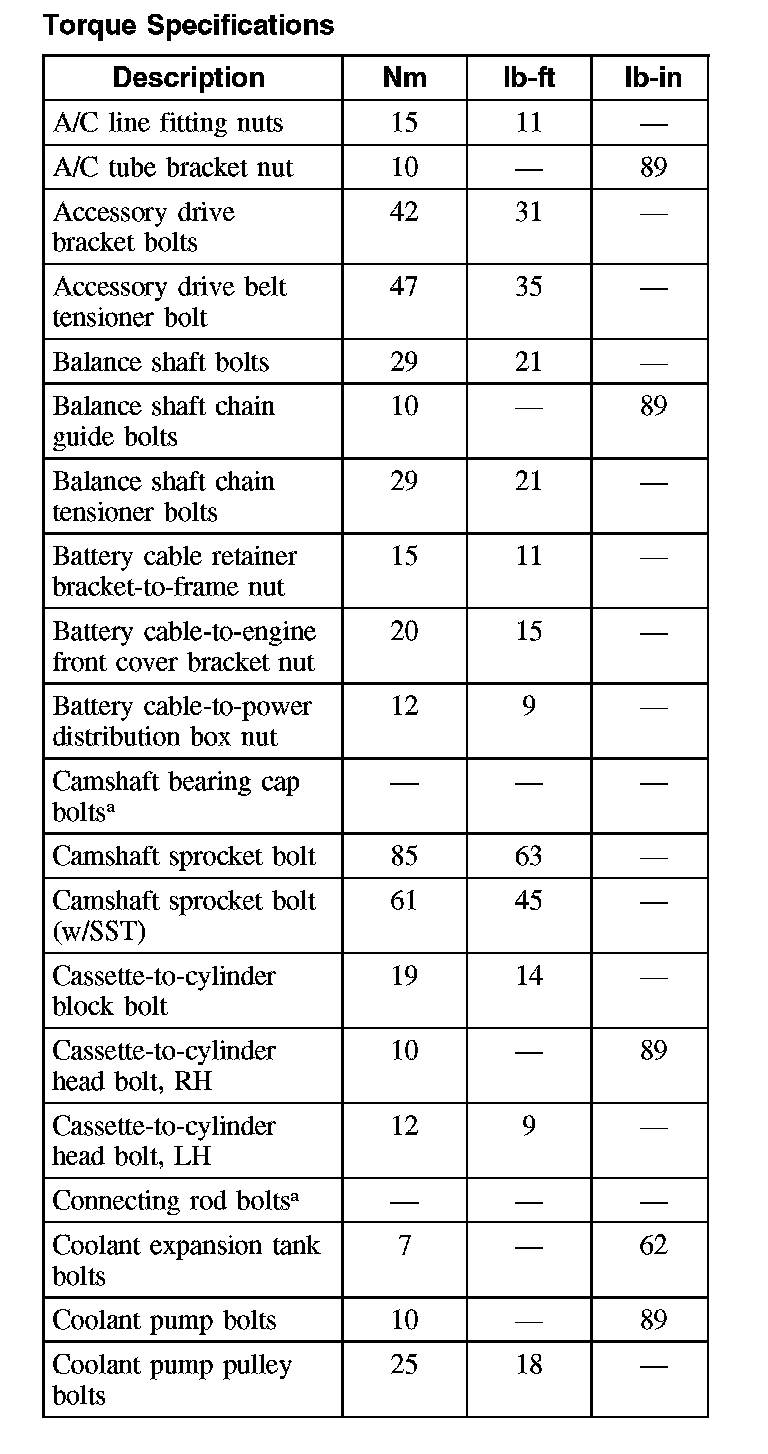 Torque Specification (Continued):