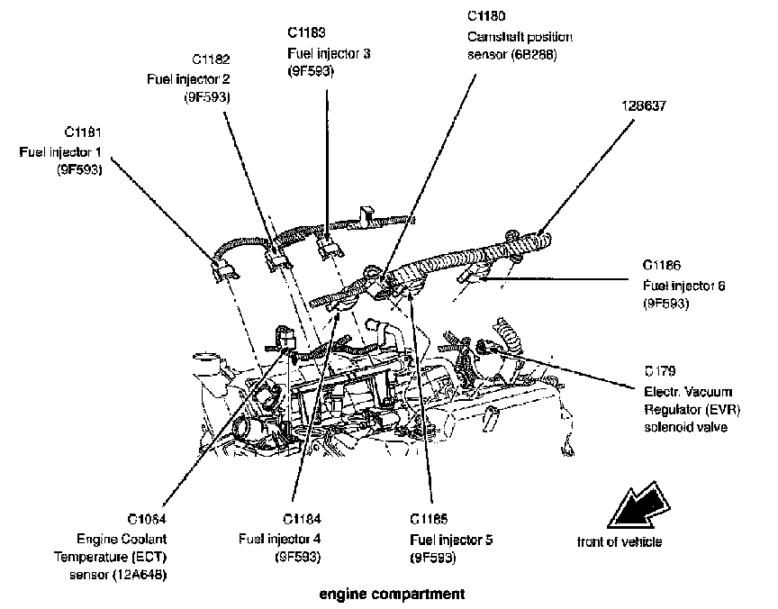 Coolant Temperature Sensor/Switch (For Computer): Locations