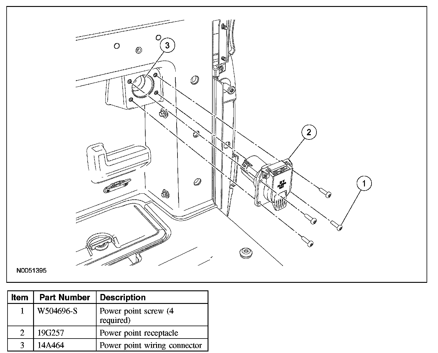 2. Disconnect the power point receptacle electrical connector and remove the power point receptacle.