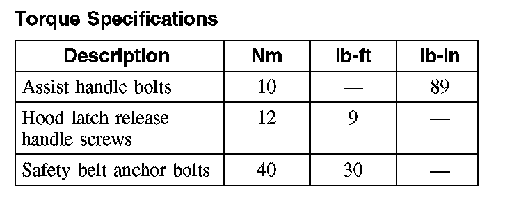 Torque Specifications: