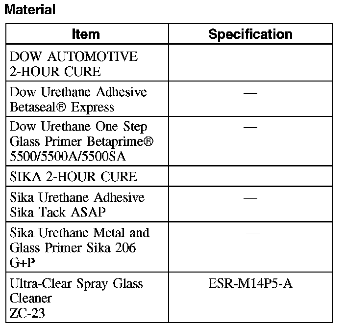 4. CAUTION: Be sure to use the same brand and cure-rate products for the adhesive and primer. Do not mix different brands of urethane and primer. Refer to the Material Chart in this procedure.