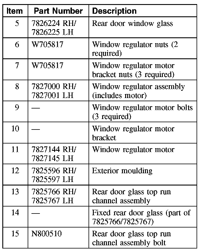 WINDOW REGULATOR - REAR DOORPart 1: