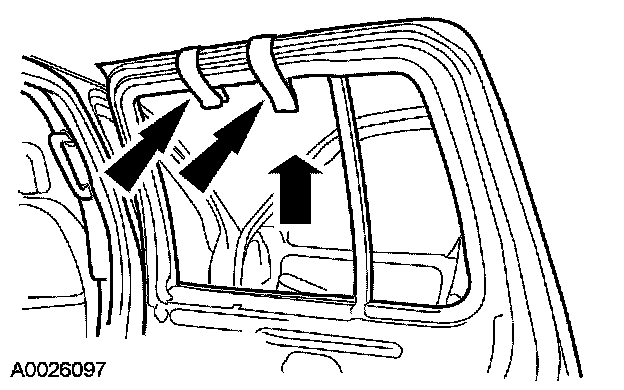 6. Secure the rear door window glass in the full up position with tape.