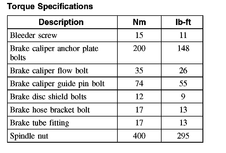 Torque Specifications, Front