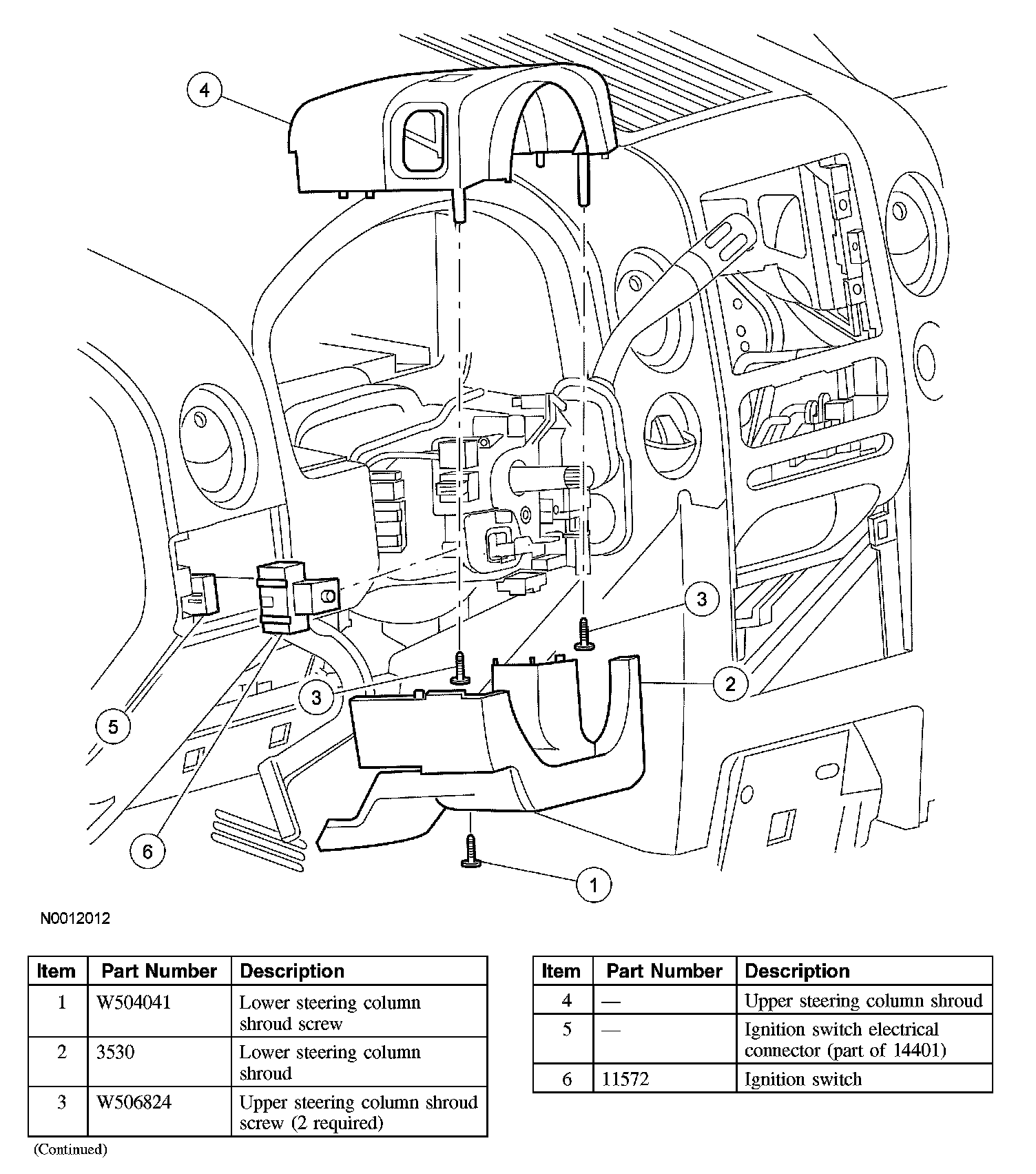 CAUTION: Do not remove the ignition lock cylinder and the ignition switch at the same time or damage to the column can result.