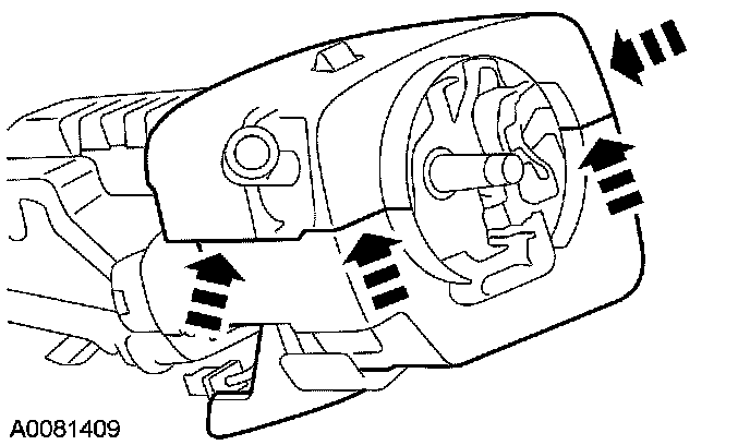4. Apply inward pressure to the upper and lower steering column shroud cover seam to separate them and remove the lower shroud.