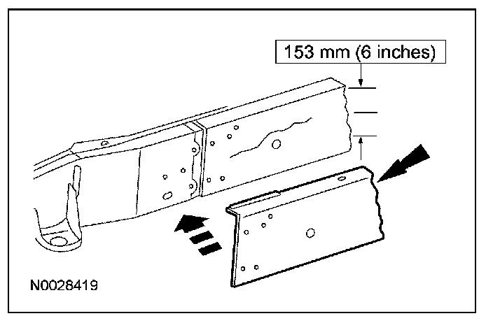 WARNING: Frame rail crush zones absorb crash energy during a collision and must be replaced if damaged. Straighten damaged frame rails to correct frame dimensions prior to frame member sectioning. Failure to follow these instructions may adversely affect frame rail performance and may result in serious personal injury to vehicle occupant(s).