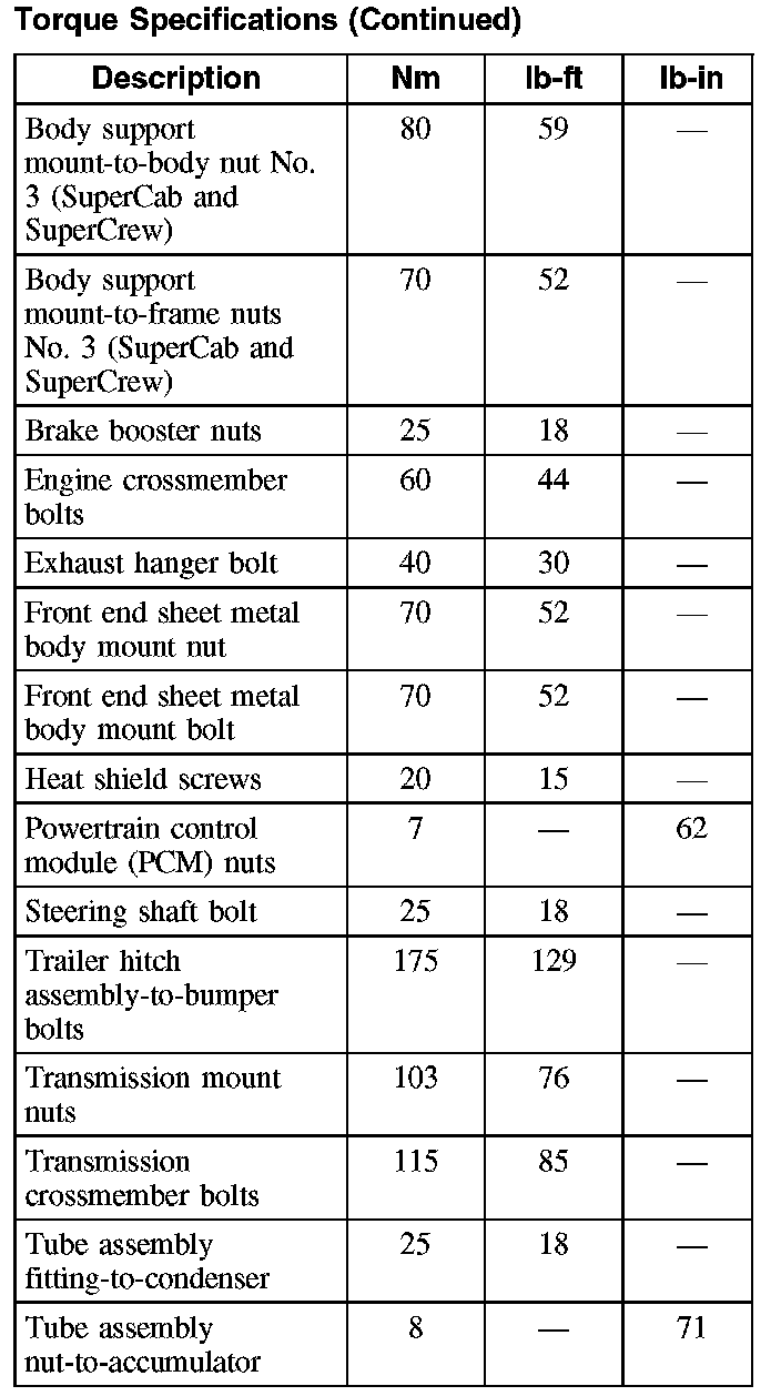 Torque Specifications (Part 2):