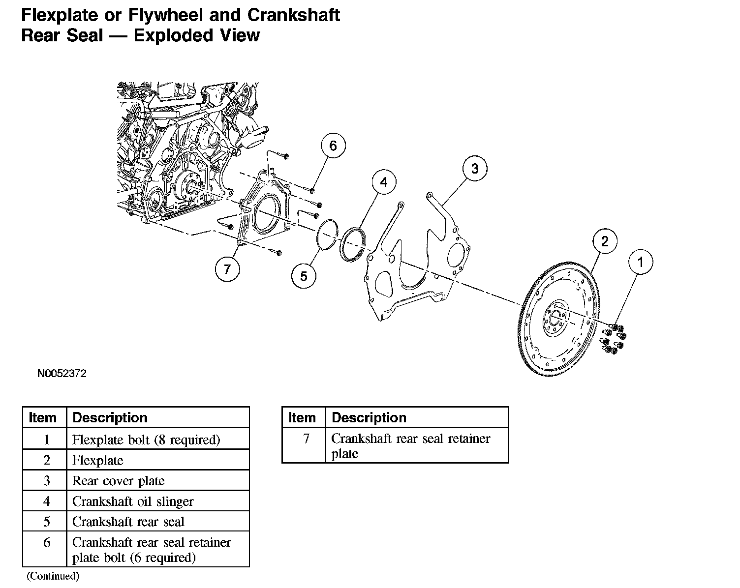 Flexplate or Flywheel and Crankshaft Rear Seal - Exploded View: